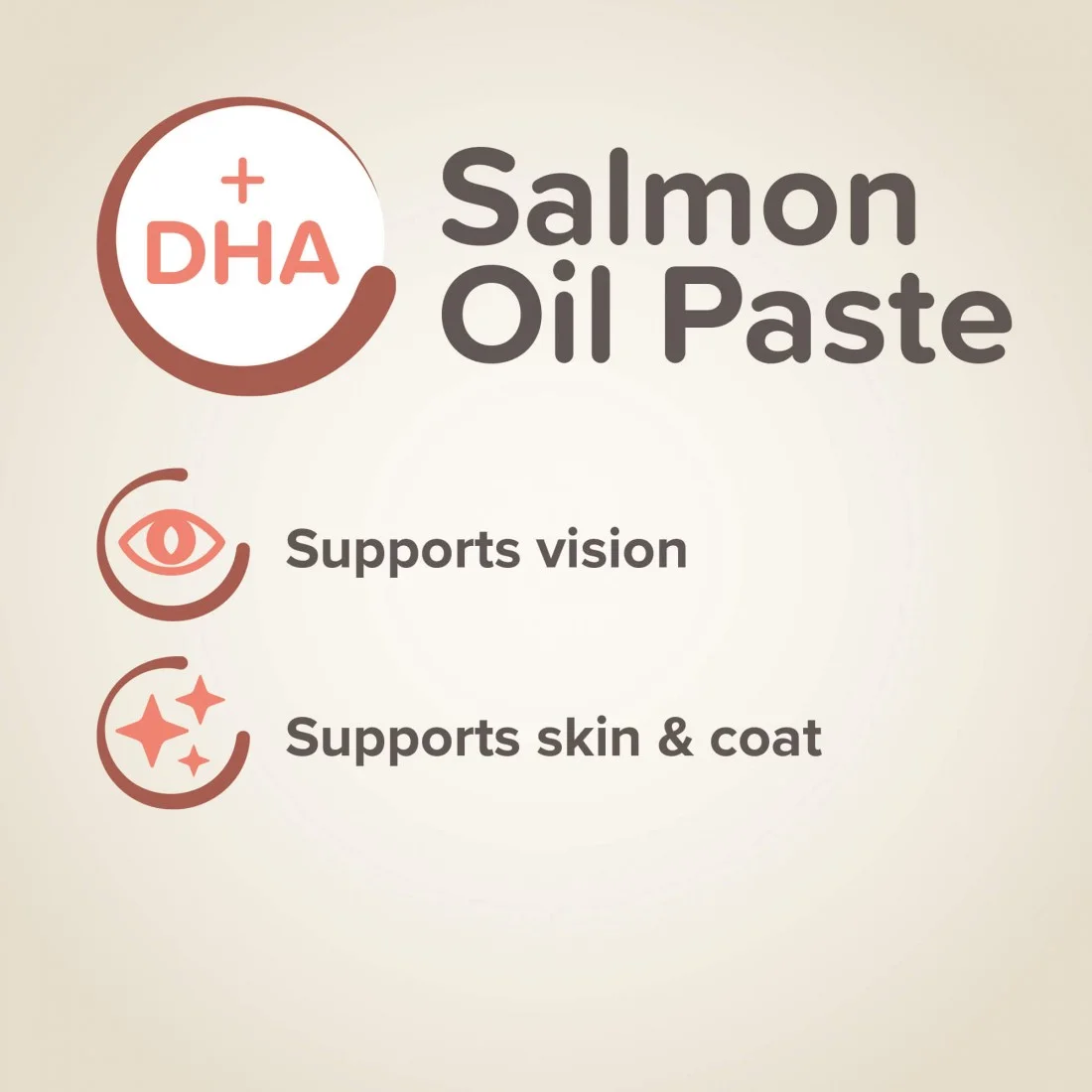 Beaphar паста със сьомгово масло е вкусно лакомство за кучета, съдържащо омега-3 и 6 мастни киселини за поддържане на здрава и блестяща козина, както и DHA, който подпомага доброто зрение.