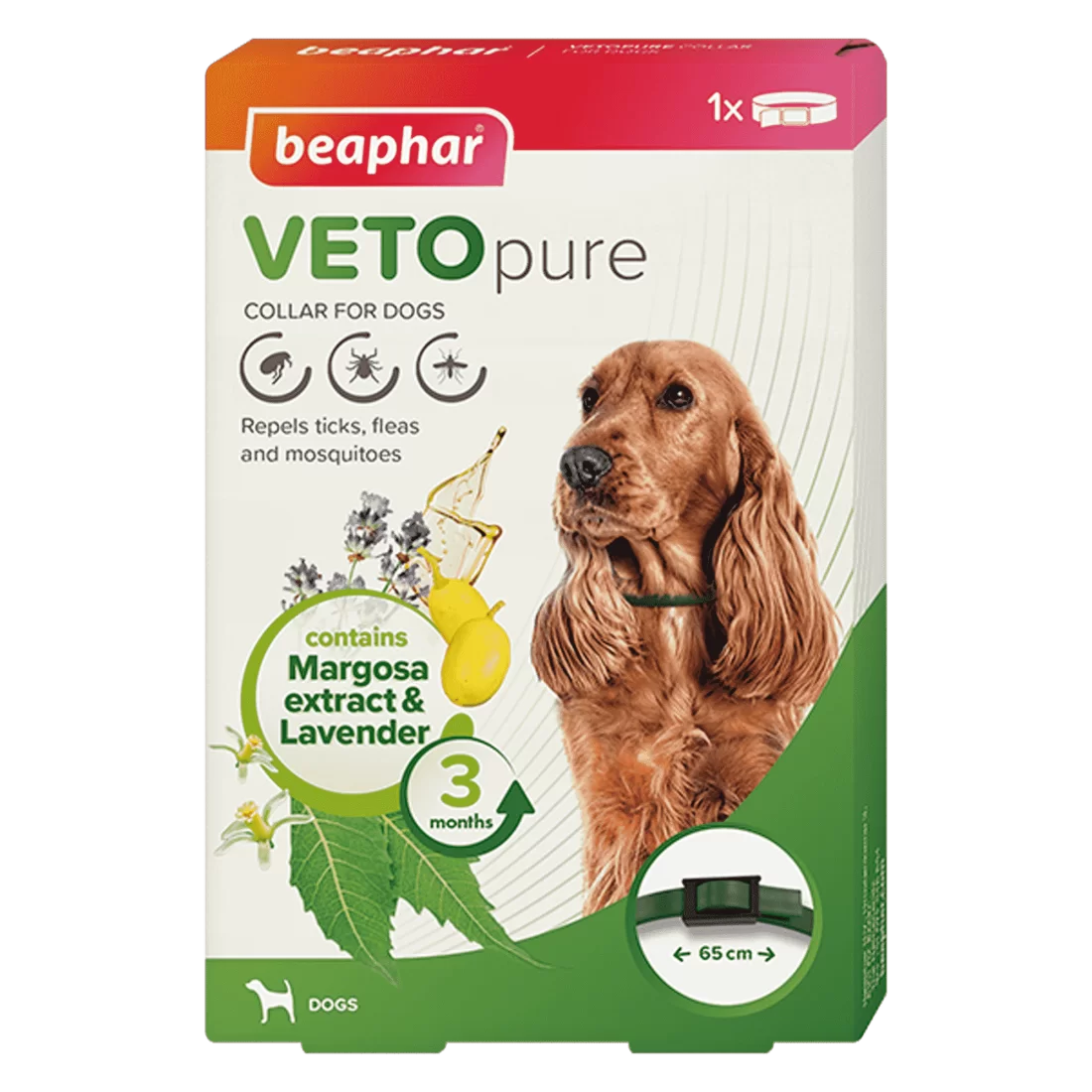 Нашийникът Beaphar VETOpure за кучета съдържа натурални растителни екстракти, включително маргоза и лавандула, за да отблъсне бълхите от кучетата до 12 седмици. За най-добри резултати използвайте в началото на сезона, преди да се появят бълхи!